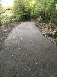 We are very happy to report that Pitchfont Lane has now been dramatically improved for walkers and riders, having had a bit of makeover thanks to some serious resurfacing work and several tonnes of tightly packed aggregate!