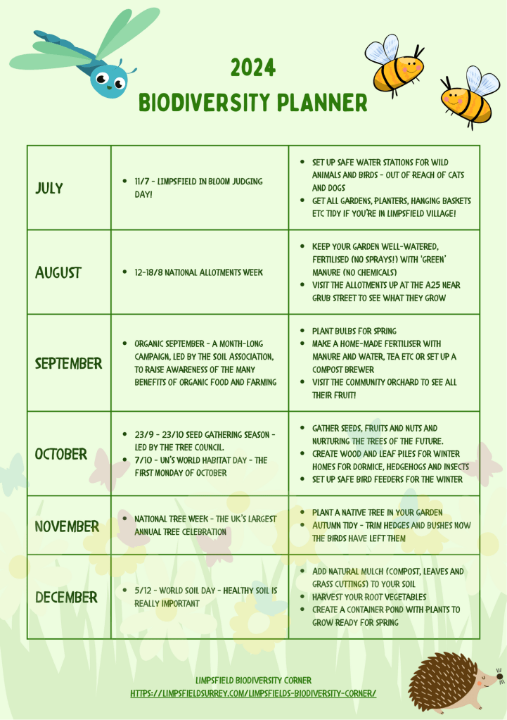 For lots more information, ideas and projects, visit our partners at Limpsfield Biodiversity Corner HERE: https://limpsfieldsurrey.com/limpsfields-biodiversity-corner/