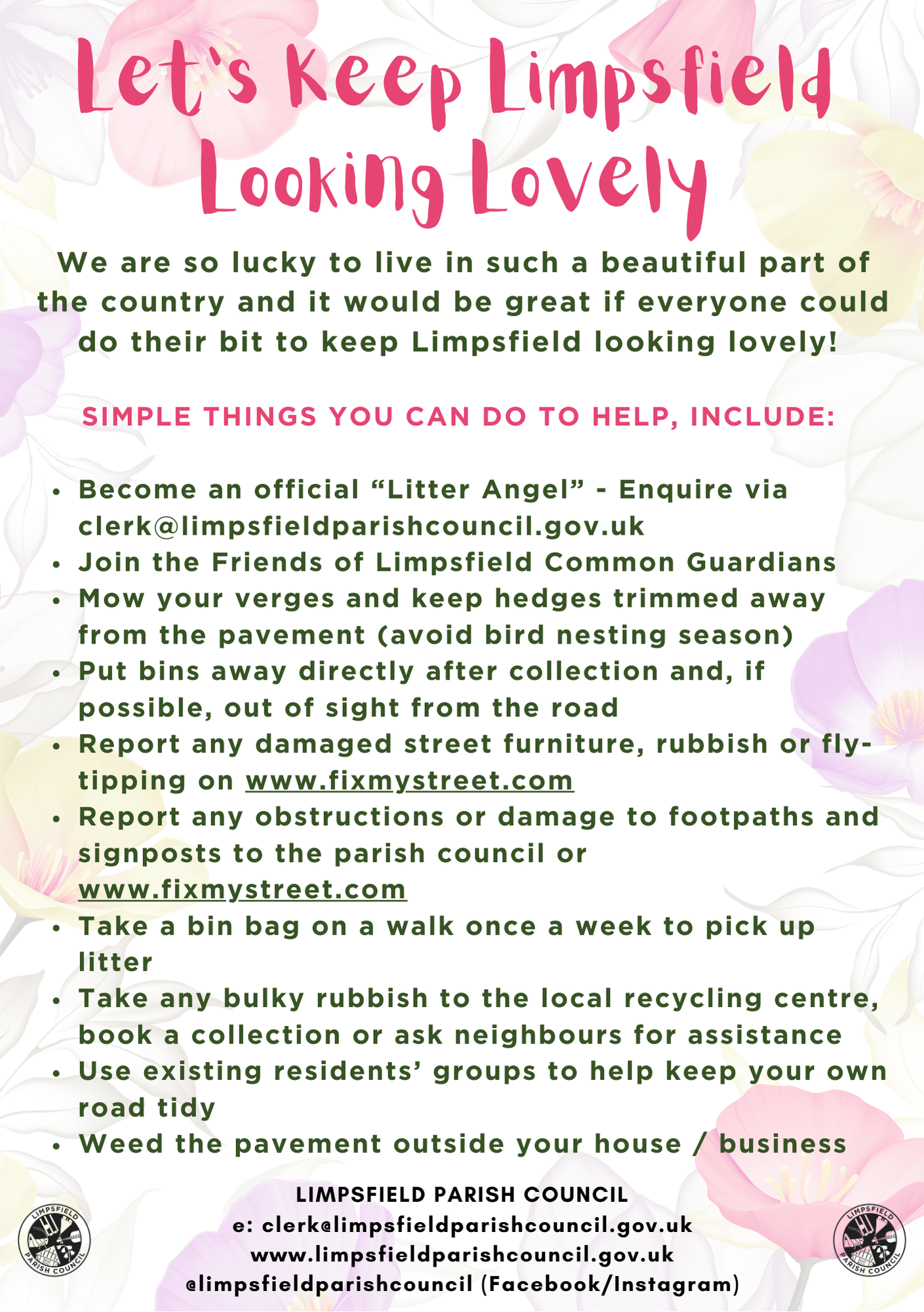 For more information, please visit www.limpsfieldparishcouncil.gov.uk or contact clerk@limpsfieldparishcouncil.gov.uk.
