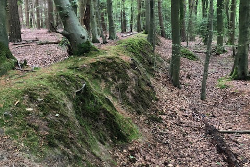 Keep going until passing a Greensand Way marker post, then turn half right into woodland and up a small bank. Turn left at the next marker post and you are in an area of ‘humps and bumps’!