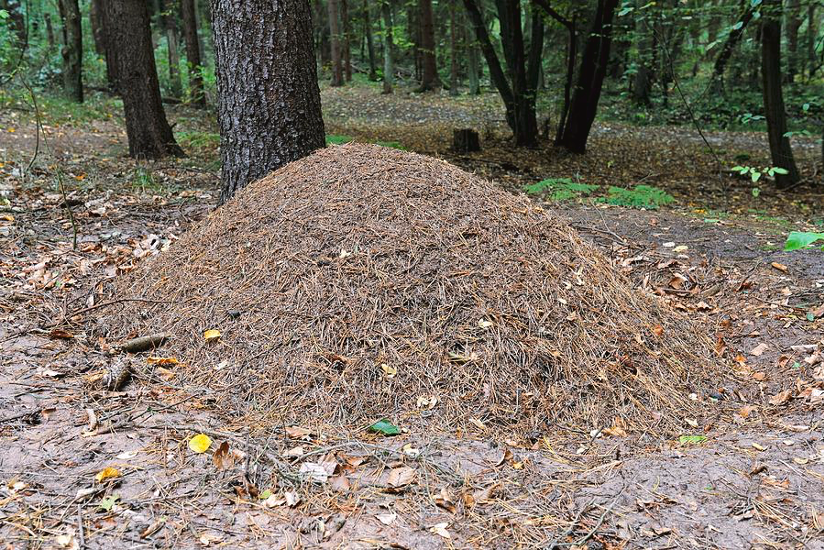 A colony of wood ants can produce a dome-shaped nest that can reach nearly 10 feet in diameter and 4.5 feet in height. Nests are thatched with twigs, stems, grass blades and conifer needles. The resulting formations soak up sunlight and keep the ants warm.