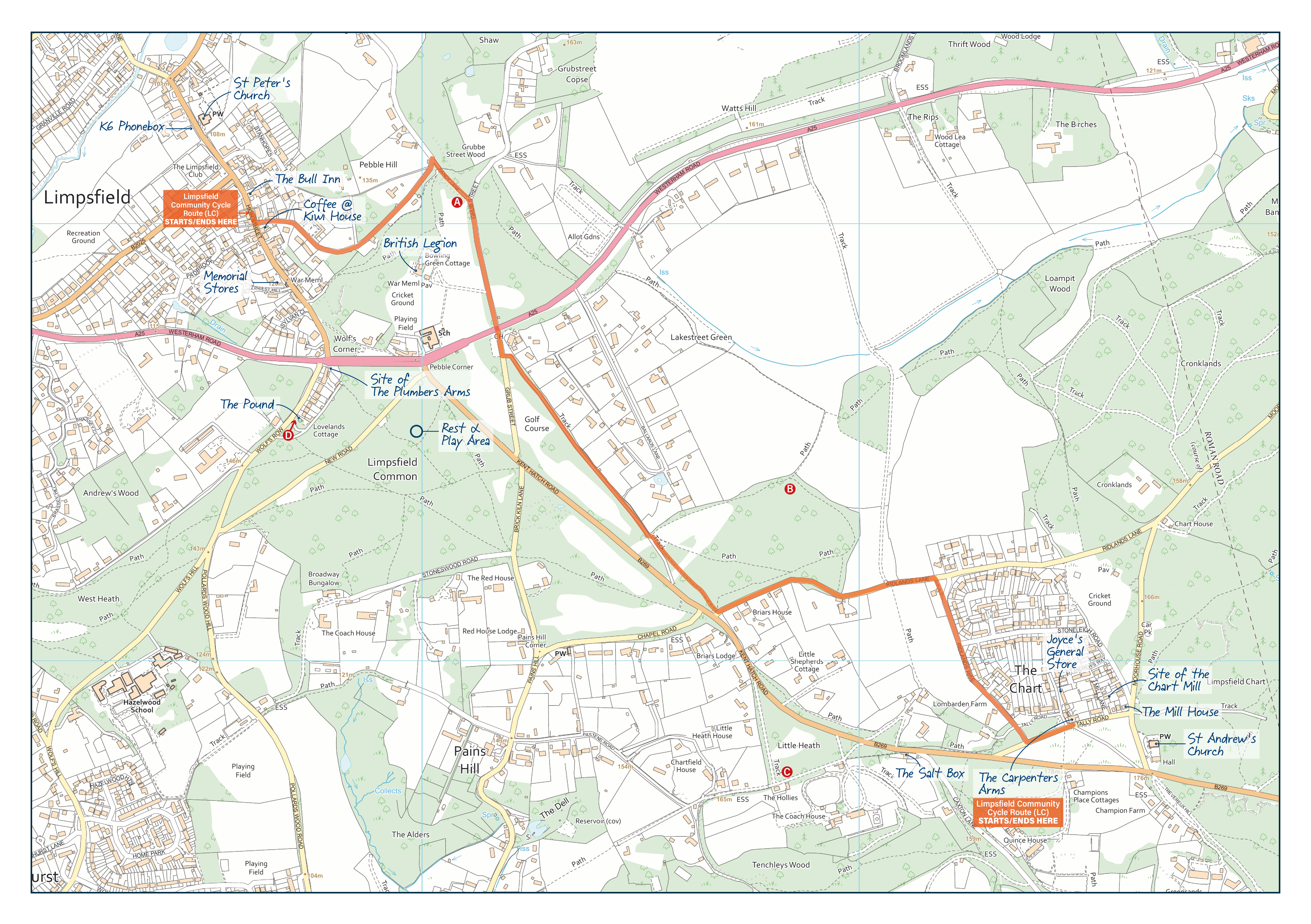 The Limpsfield Community Cycle Route (LC) – in ORANGE on map